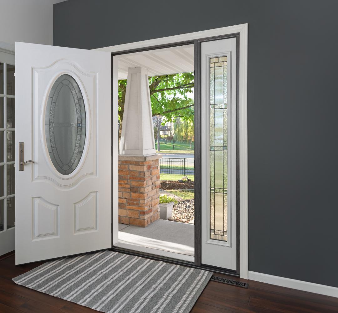 If your entryway has a bit more space, consider adding a sidelight to your Ensemble™ entry door. A sidelight is a section of glass flanking the door. These sections can be full glass (direct-set) or a smaller section of glass positioned within its own panel (panel-set).